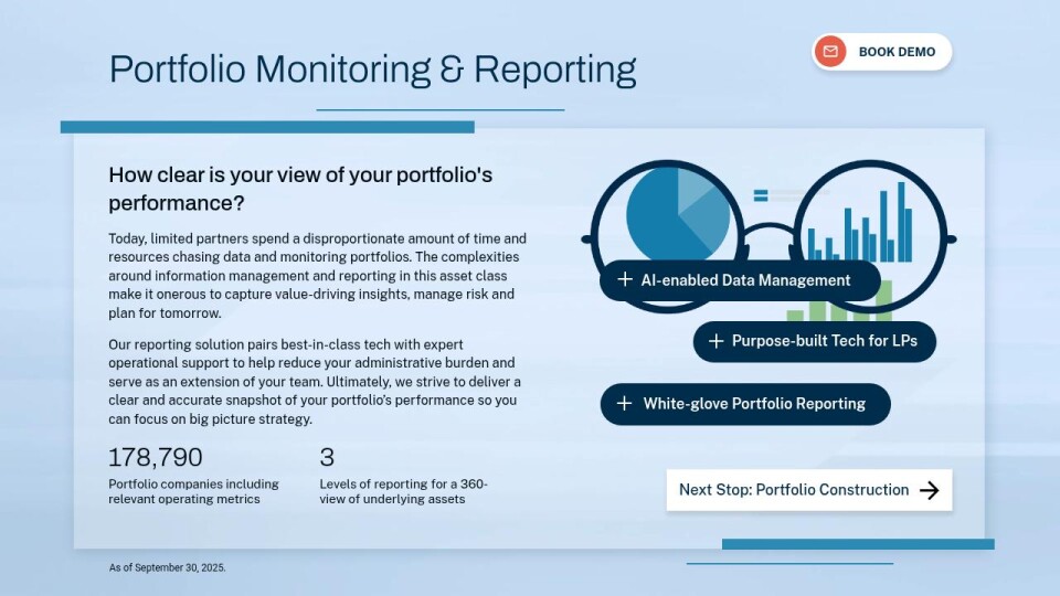 Today, limited partners spend a disproportionate amount of time and resources chasing data and monitoring portfolios. The complexities around information management and reporting in this asset class make it onerous to capture value-driving insights, manage risk and plan for tomorrow.